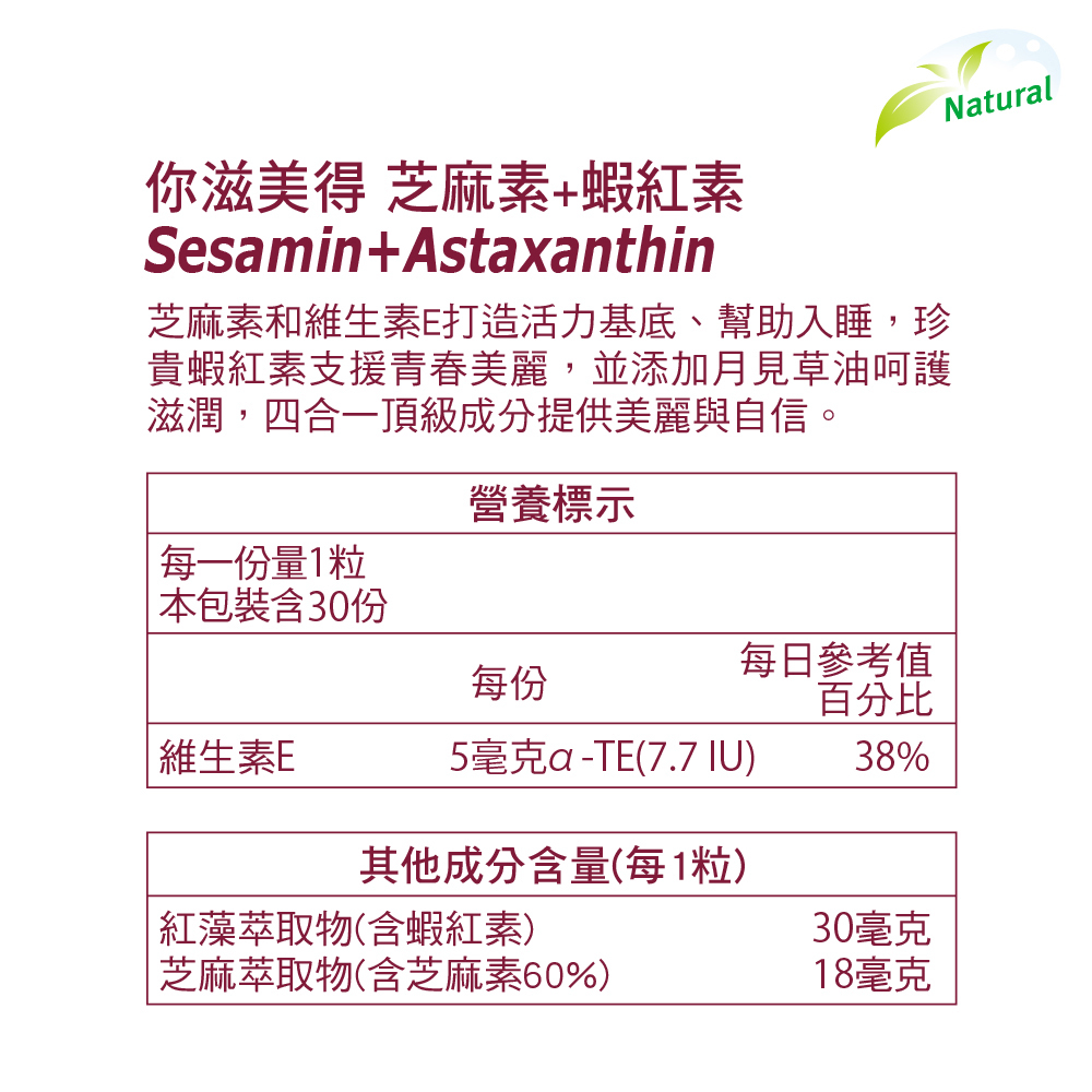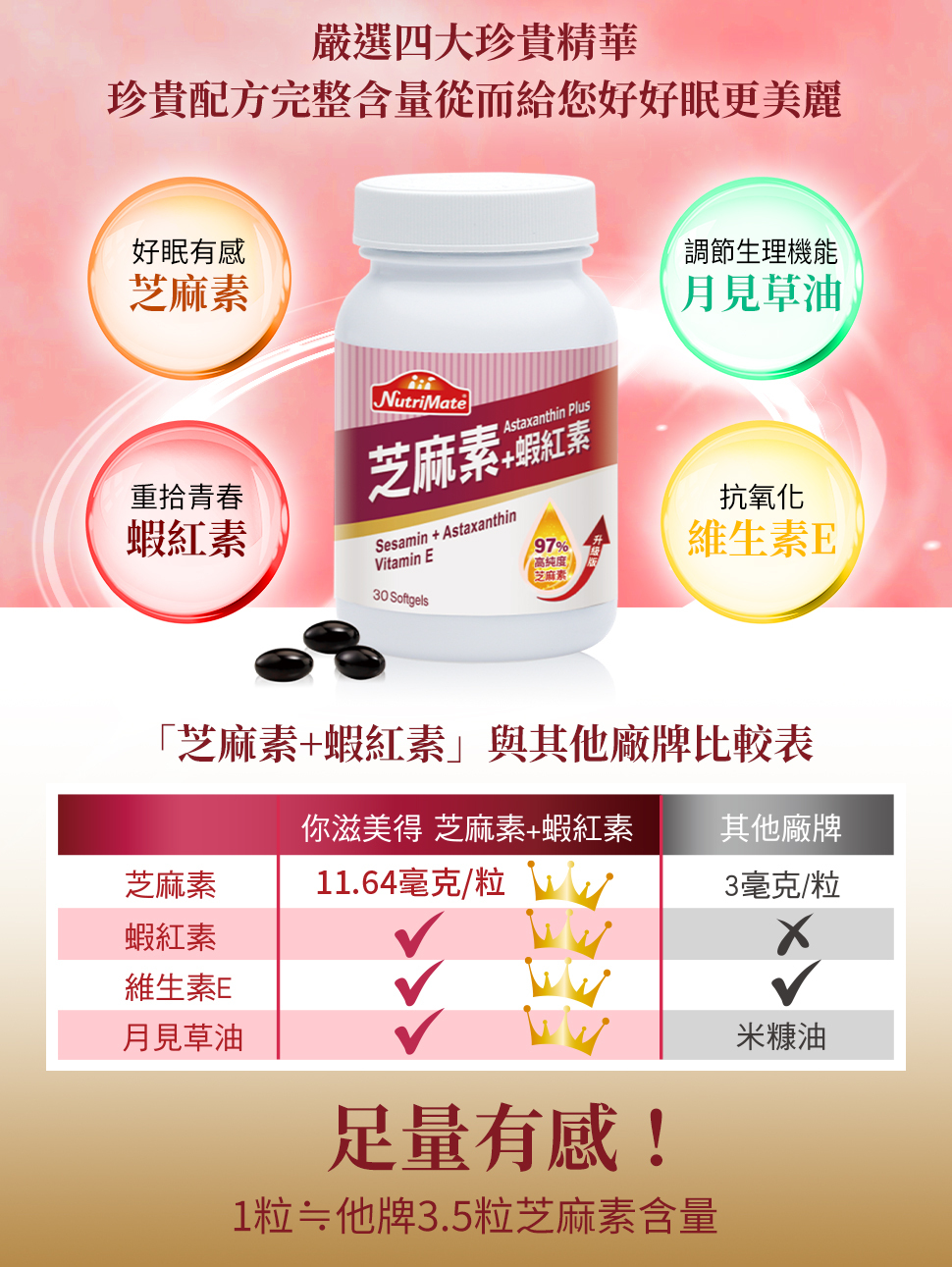 | 品牌: | 【Nutrimate你滋美得】芝麻素+蝦紅素 |