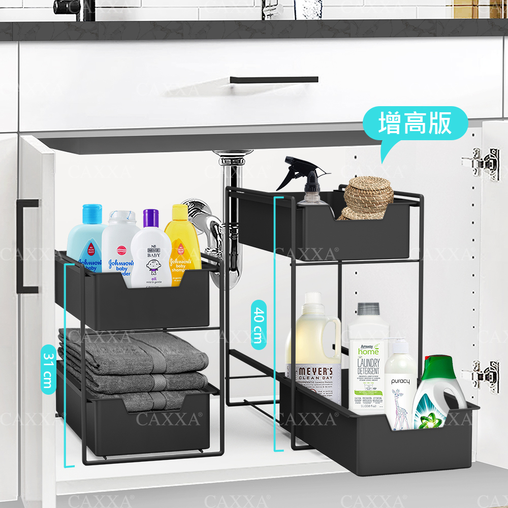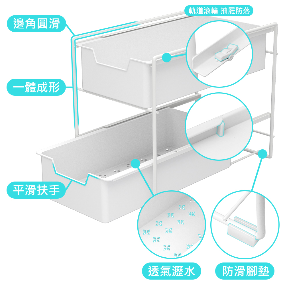 免安裝 水槽下兩層抽屜式收納架